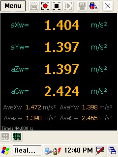 三个方向频率加权加速度信号的均方根方值(awX,awY,awZ),单位m/s^2