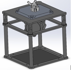 3.1 振动平台方案: 振动装置由支架、台面、振动机构、隔振机构四部分组成。在振动机构的带动下做横向、纵向、上下等三维振动。 台面 和底座两部分之间用隔振弹簧相连接。